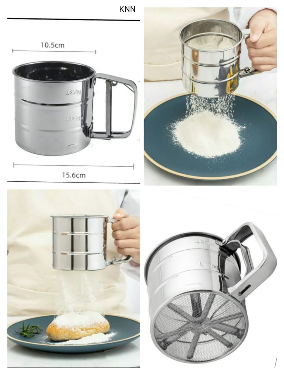 Fine Mesh Design: Even and smooth sifting of flour, sugar, cocoa, and other powders.